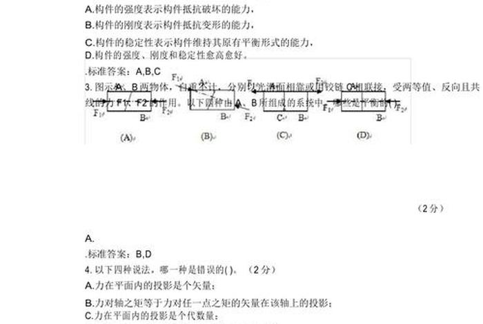 1. 选择题:主要考察学生对工程力学基本概念和原理的理解。题目涉及面广,包括力学中的各个领域,要求学生能够准确区分和判断。