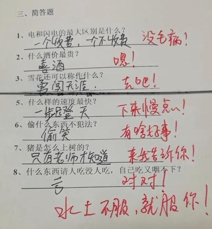 当家长和老师看到小学生给出的幽默回答时,往往会感到惊讶和欣慰。他们会对小学生的聪明才智和幽默感表示赞赏,并对小学生的思维方式给予鼓励和支持。家长和老师也会帮助小学生理解问题的本意,引导他们正确回答问题。