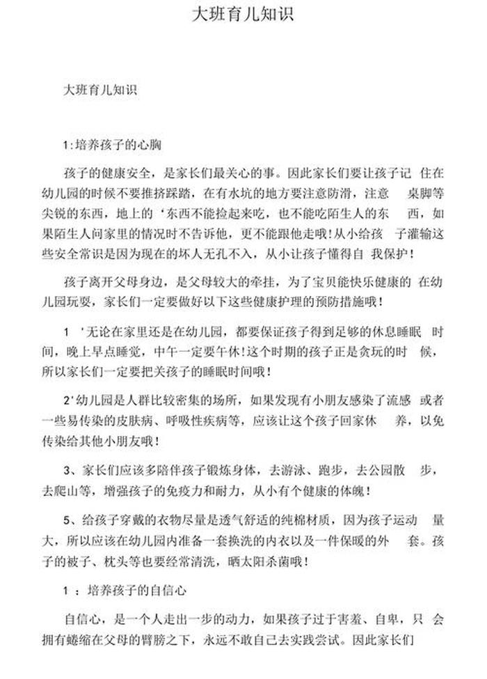 通过以上几个方面的详细阐述,希望能够帮助家长更好地关注孩子的成长,了解大班育儿知识,为孩子的健康成长提供更多的支持和帮助。